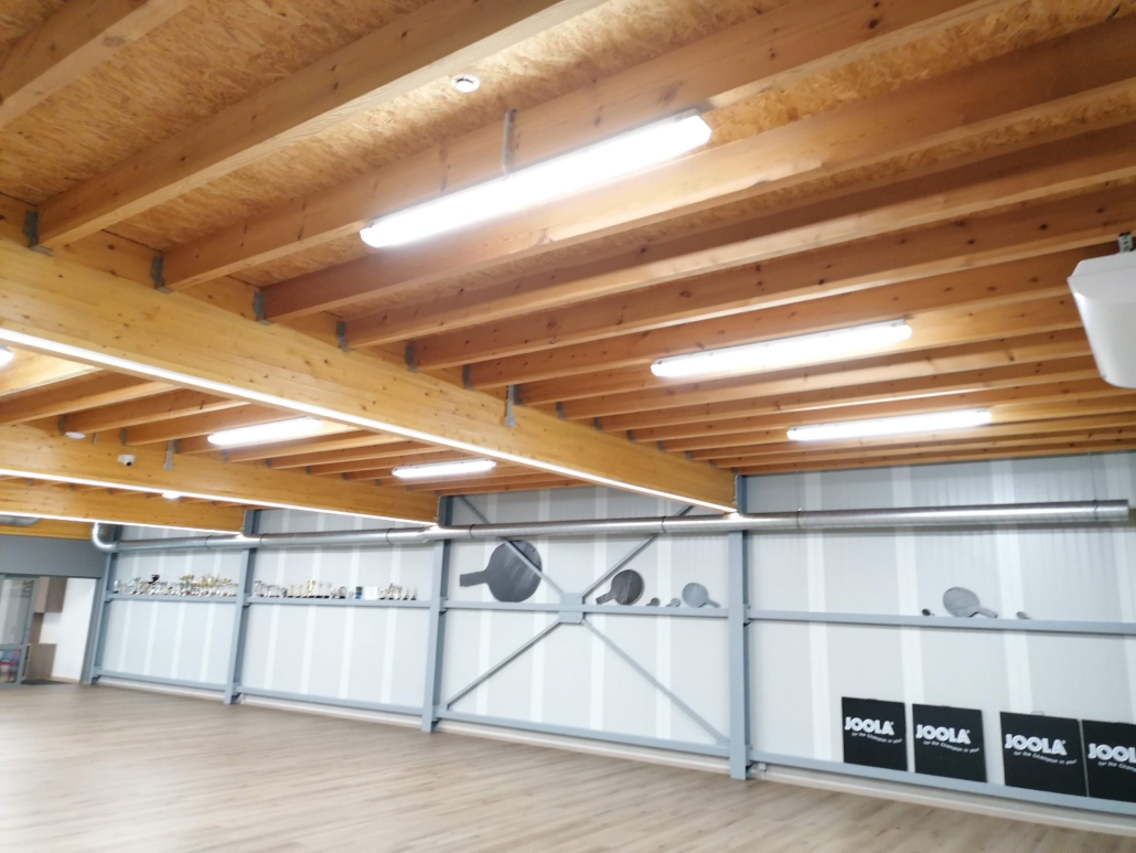 Voor Tafeltennisclub Hallaar realiseren we in het nieuwe clublokaal een volledige elektrische installatie. Het lokaal moet niet alleen veilig en gebruiksvriendelijk zijn voor de clubleden, maar ook vlot werken bij verhuur: automatische verlichting, slimme toegangscontrole en een goede koppeling met alarm- en brandbeveiliging.